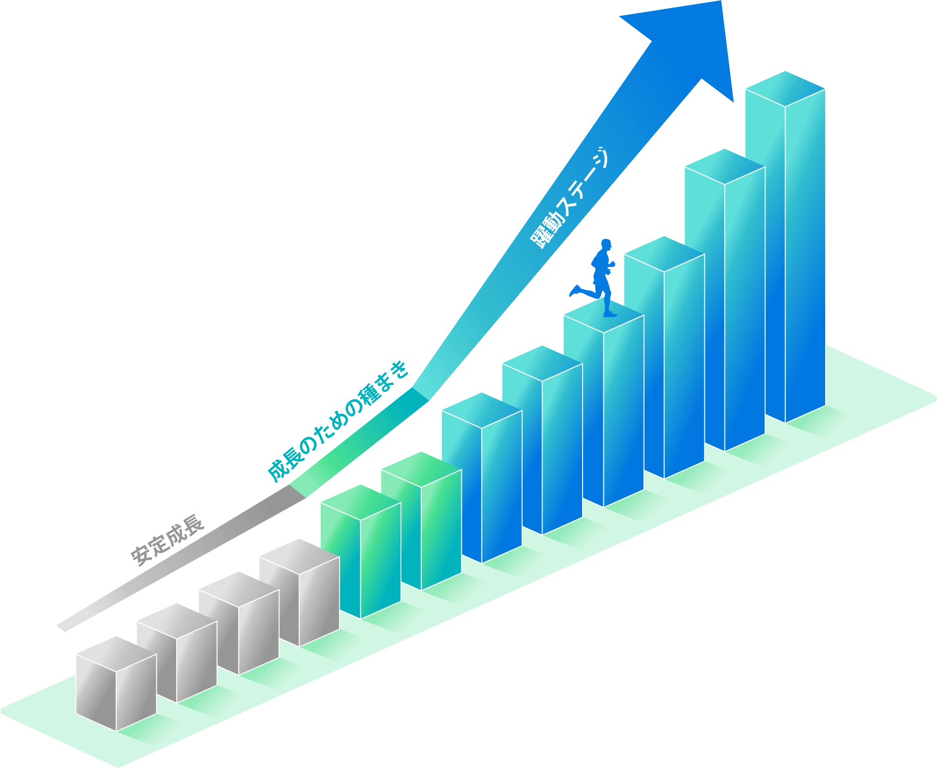 私たちは今、⽬指すべき⼭の頂を⾒定め、成長の「躍動ステージ」へと踏み出しています。