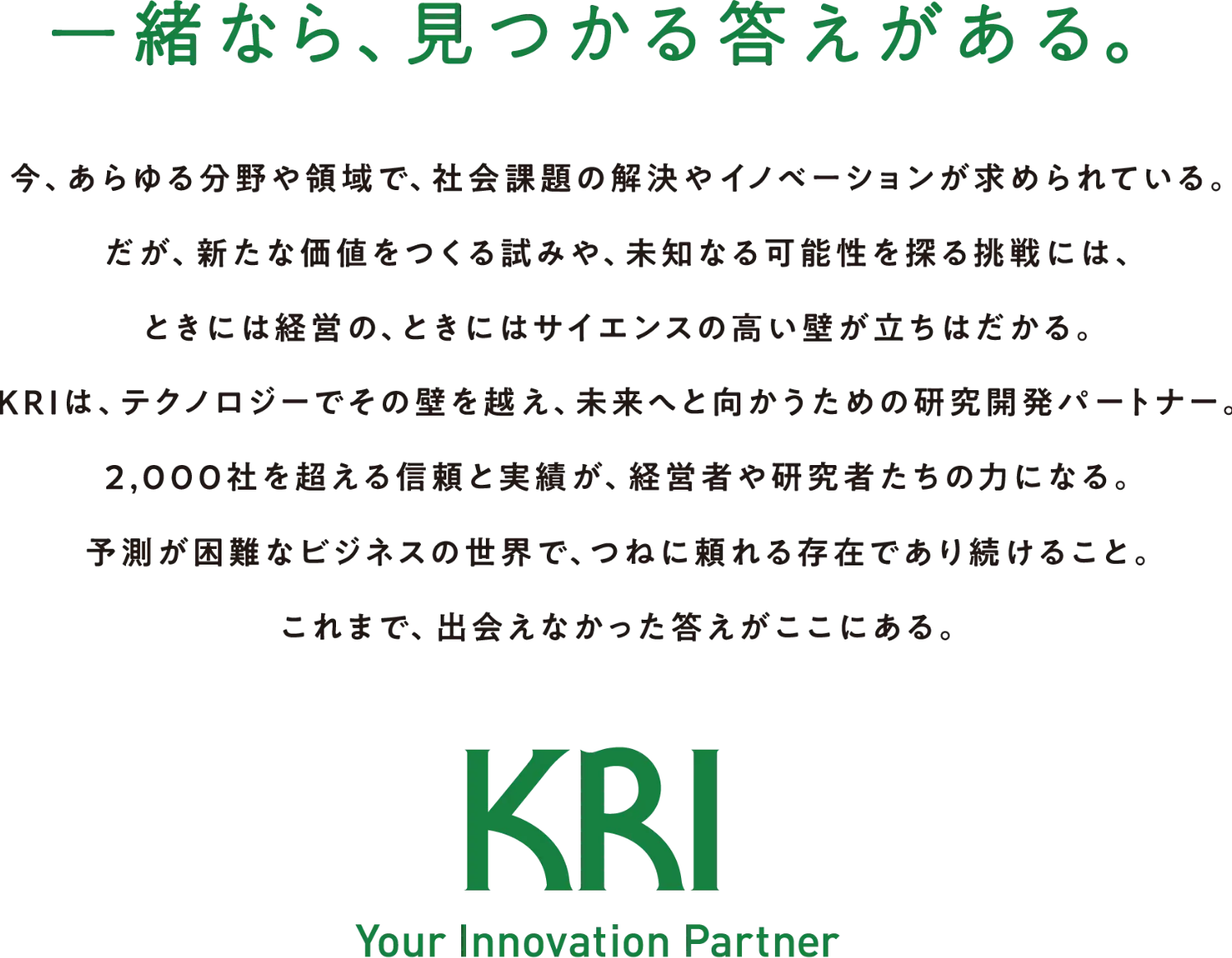 KRIは、研究開発を通じてお客様の事業革新を支える存在であり続けます。