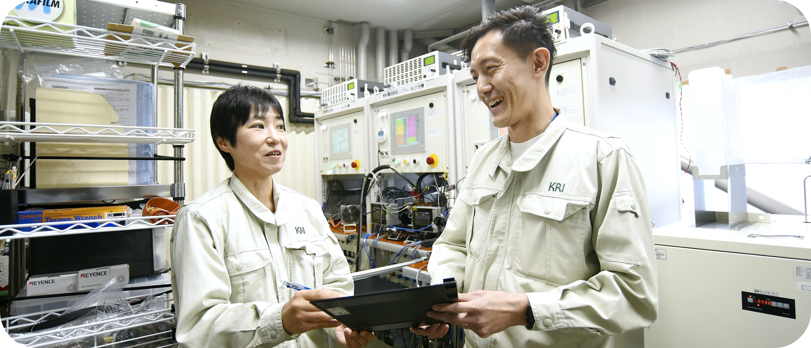 仕事をする上で常に心がけているのは、お客様目線で考えることです。経験が浅かった頃は自分目線で業務を進めてしまい、お客様の意図や期待を十分に捉えきれていなかったと思います。ある時目線を変え、「お客様は何を知りたいのか」「KRIに何を期待しているか」を常に想像するように心がけてから、業務の進め方が大きく変わりました。結果としてプロジェクト全体がスムーズに進み、お客様ともより良い関係を築けるようになりました。今後は、KRIが業界随一の燃料電池評価機関として認知されるように、新技術の習得や設備の拡充、社外への発信にも積極的に取り組んでいきたいと考えています。