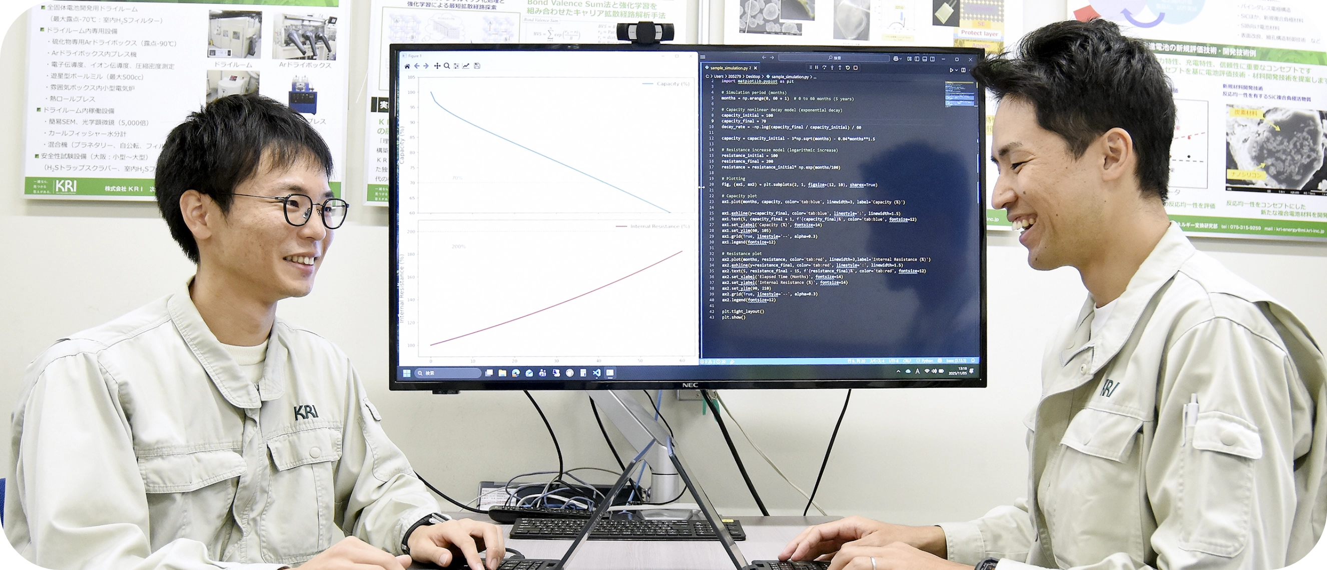 とはいえ、プロジェクトに関わるさまざまな事柄を社内外のメンバーと進めていくことは正直とても大変です。KRIで仕事をしていくなかで、研究者という枠を超えた仕事を面白いと思えるかどうかが、重要だと感じています。私自身、入社当初はお客様とのやりとりや技術提案の場に対して苦手意識を持っていました。それでも、技術を正しく伝え、課題を一緒に整理していくことは研究の延長線上にあると捉え、マーケティングの書籍を読んだり、先輩の打合せに同席しながら少しずつ学んできました。その結果、今では社外に出て一人でお客様と面談し、技術的な観点から課題や可能性を議論することにも自然に取り組めるようになりました。プロジェクトに必要な人材や技術、予算を主体的に組み立てていく視点が身についたことも、大きな成長だと感じています。