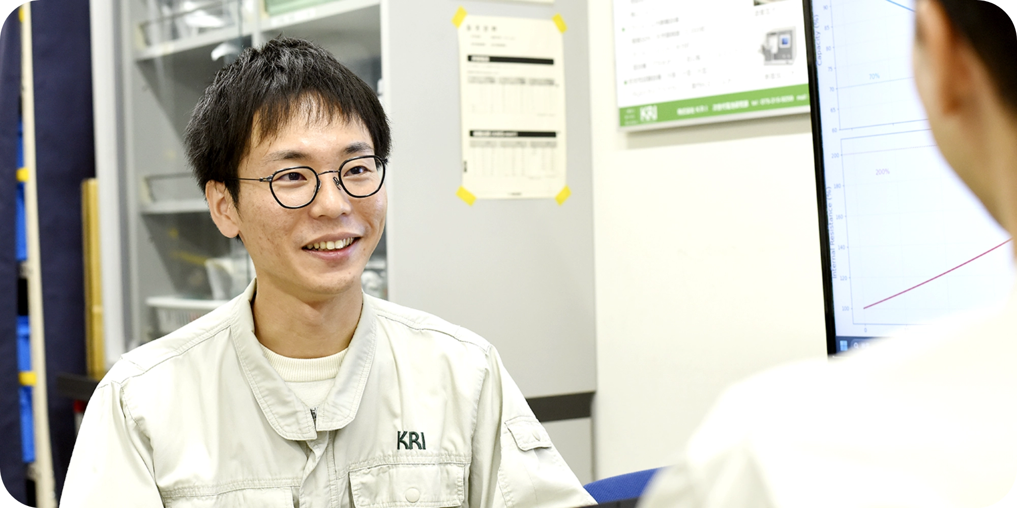 今、仕事のなかで最もやりがいを感じるのは、当初は小規模だった研究テーマが事業化に向けて進展し、周辺技術も含めてKRIが研究開発を一括して受託するようになったときです。依頼のリピートや案件の大型化につながった瞬間には、「研究が価値として認められた」実感があります。お客様との打合せでは、自分の専門分野だけに閉じず、社内の他メンバーが持つ技術や強みも積極的に組み合わせながら提案することを意識しています。個人ではなく、組織として価値を広げていける点も、KRIならではの面白さだと思います。成果がわかりやすく、その成果が評価や給与に大きく反映される点も研究者として大きなモチベーションになっています。