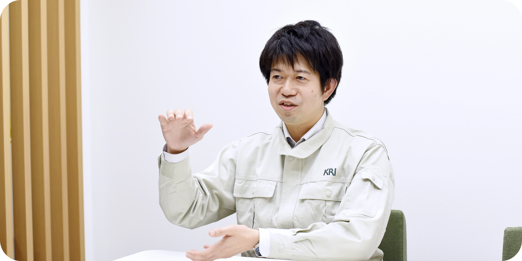 KRIの魅力は、技術を通じてどの業界のお客様とも協働できることです。特にCCUSは、多くの企業が取り組む重要なテーマで、その可能性は広がる一方です。また、大手メーカーでは、効率化のための業務分担が進んでいると聞きますが、KRIでは研究員一人ひとりにプロジェクト提案の裁量があり、新技術分野へチャレンジすることもできます。自分の技術が生かせるパートナーを探して一緒に開発を進めていく、そんな主体的な関わり方ができる点は、大きな特長だと感じています。近年は、大学と企業の間に立って、プロジェクトを進めるケースも増えています。エンジニアリングに近い領域を担う私たちはその橋渡し役として非常に良いポジションにいると感じています。