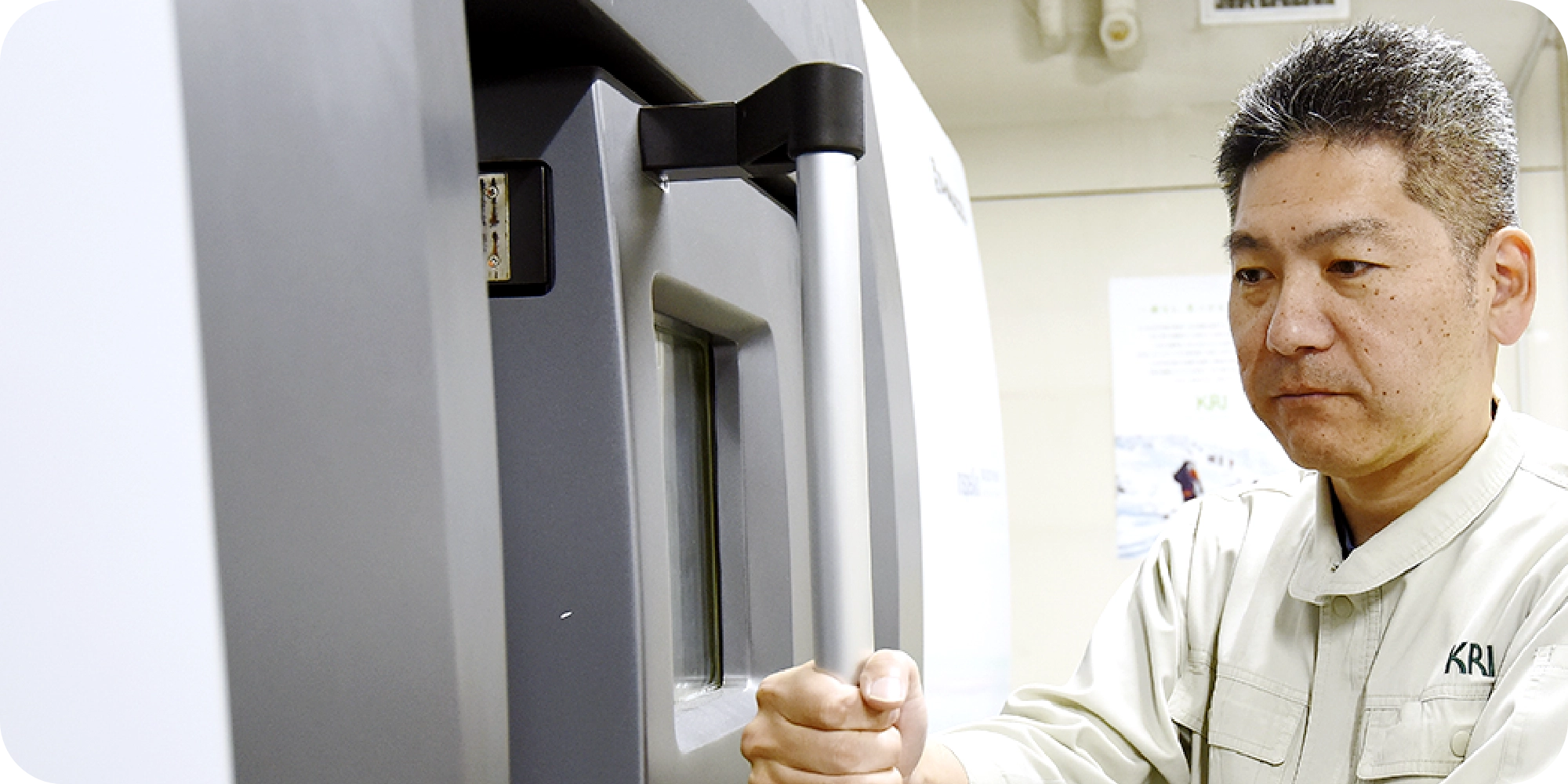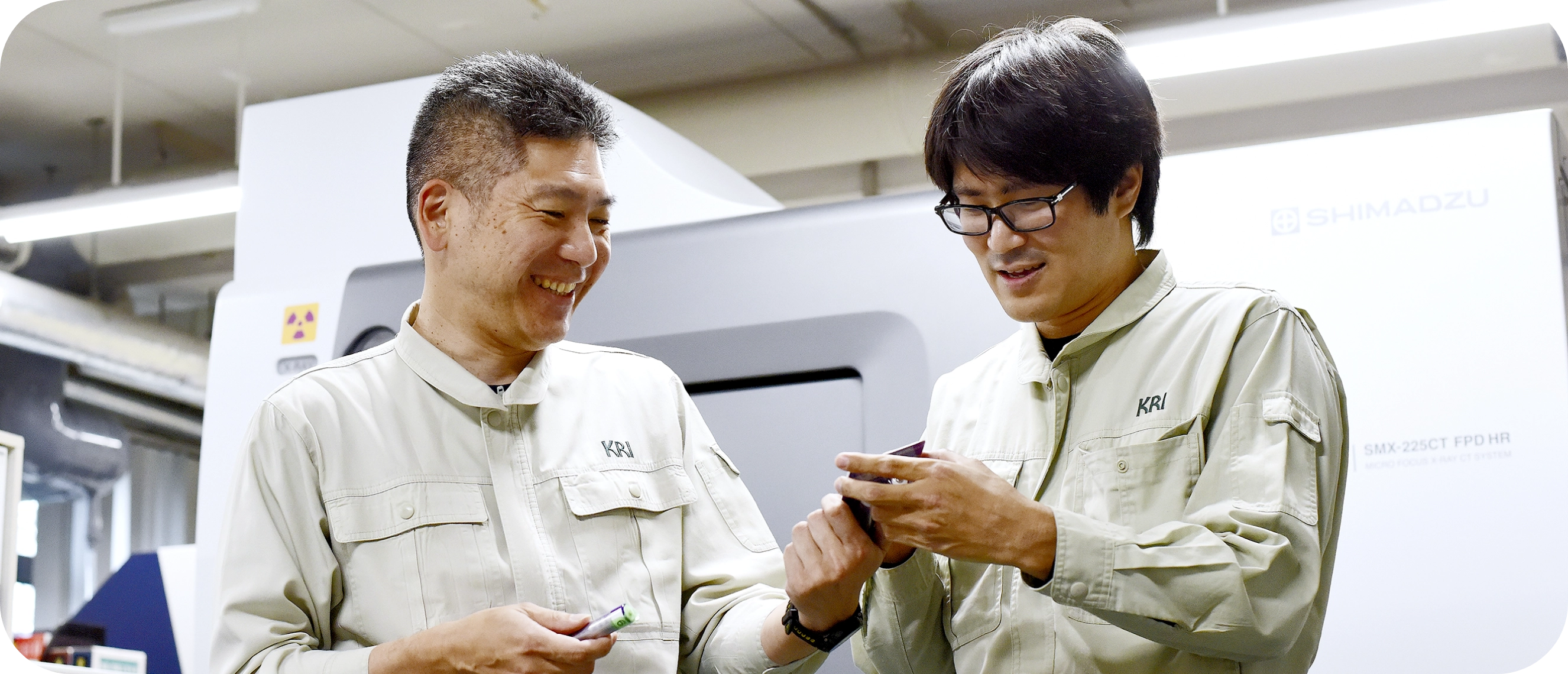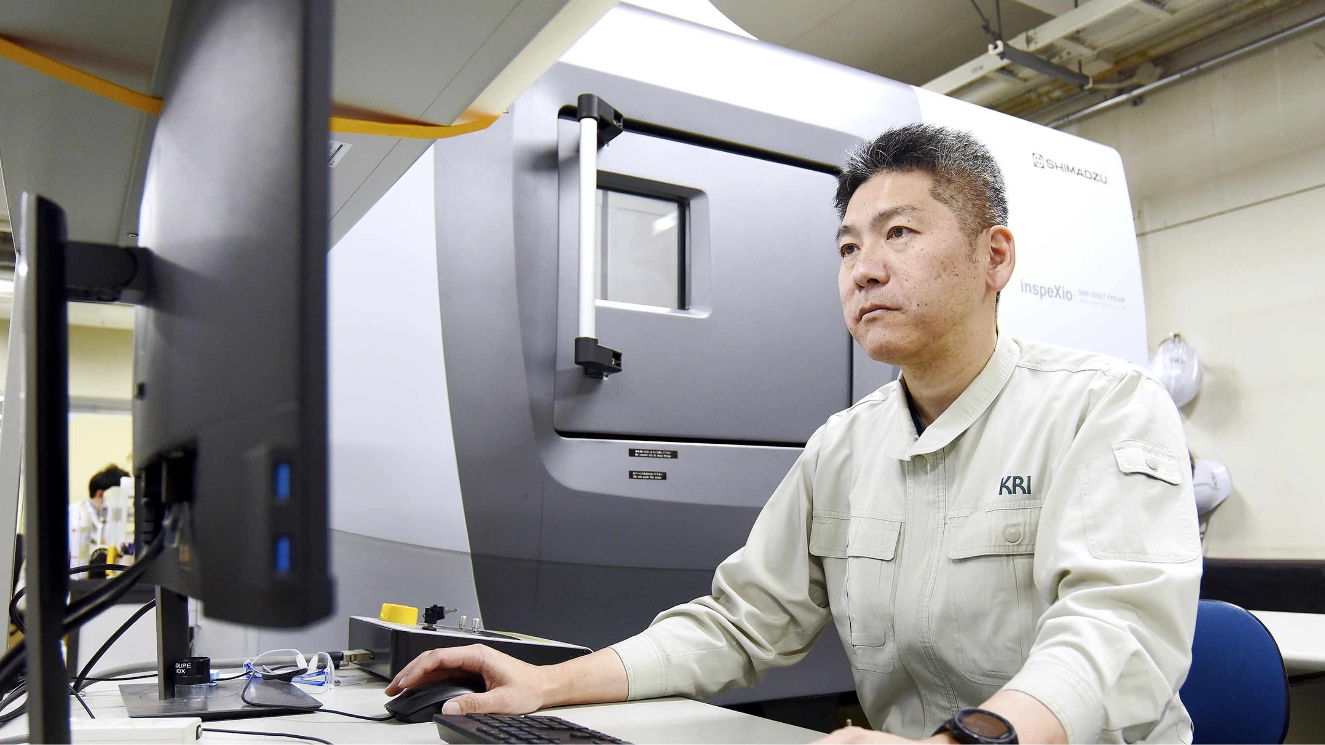 解析研究センターは、材料トラブルの原因究明を専門とする部署です。材料の割れや変形、変色、腐食といった劣化現象に対し、さまざまな分析機器を駆使して化学的・物理的な状態を明らかにし、原因の追究から再現、対策まで一貫して手がけています。私が担当しているのは材料構造解析で、主にX線CTという装置を扱っています。X線CTは、X線透視像、いわゆるレントゲン写真を360度撮影し、三次元像を作り出す装置で、最大の特徴は対象物を壊さずに内部を観察できることです。トラブルが発生した状態のまま見られるため、内部で音がする原因や内包物の漏れなども比較的容易に特定できます。