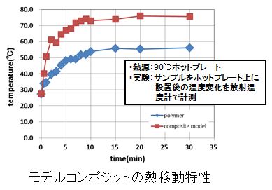 - 1)コンポジット成形体の表裏を貫通するフィラー部が存在は、その分率が小さくても熱移動特性(動的、平衡論的)が改善